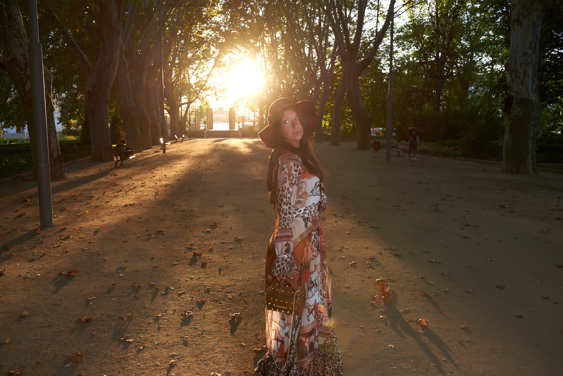 Como podéis ver, este elegante vestido lo he combinado con este sombrero granate de Oggy’s y un bolso con tachuelas de Rinascimento. He optado por estos accesorios para darle un toque informal porque es un vestido apropiado para algún evento de noche o coctel de tarde.